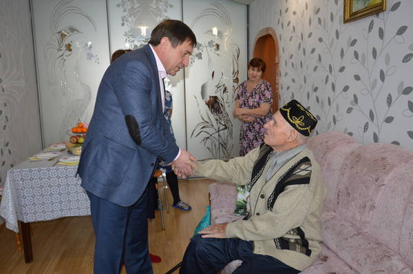 Азнакай муниципаль районы башкарма комитеты житэкчесе А.Х. Шамсутдинов Ленинград оборонасында катнашкан Аминов Вагиз Карим улын Ленинградны фашист блокдасыннан тулысынча азат иту коне белэн котлады