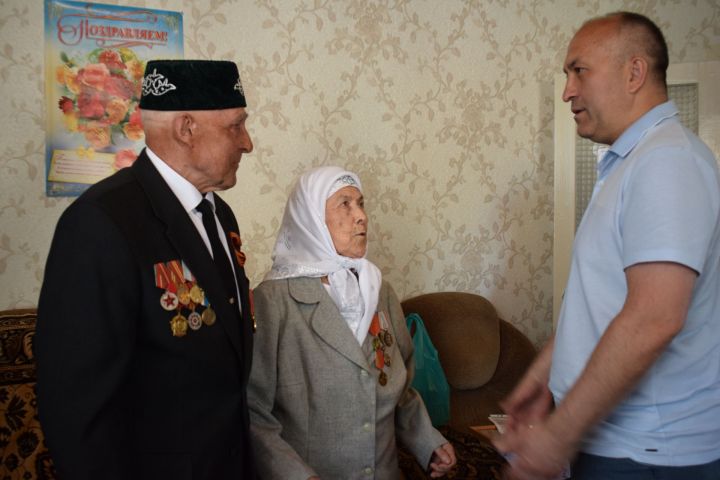 Үзен юбилее белән котларга килгән район башлыгы Марсель Шәйдуллин, ТОС җитәкчесе, күршесе Владимир Кротов, коллегалары һәм алмашы Салават Сәлахов белән иркенләп сөйләшеп, үткәннәрне хәтерендә яңартып утырды тыл ветераны.