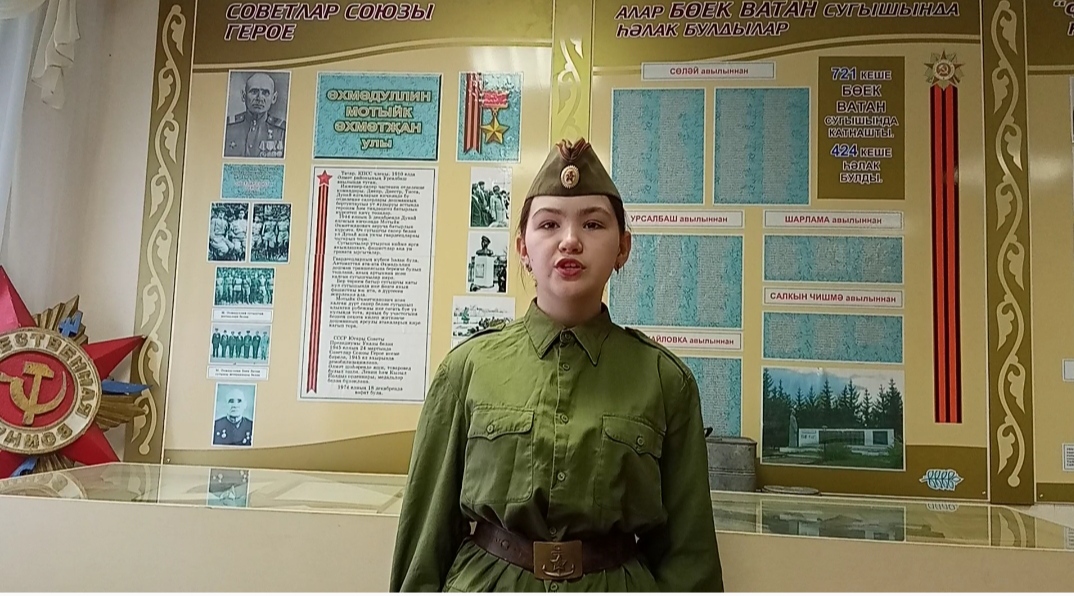 21 нче март көннеӘлмәт районы Сөләй урта мәктәбенең 8 нче сыйныф укучылары татар әдәбияты дәресен мәктәпнең Туган якны өйрәнү музеенда уздырдылар. Алар дәрестә сугыш темасына язылган әсәрләрне искә төшерделәр. Миргазыян Юнысның “Шәмдәлләрдә генә утлар яна” әсәренә анализ ясадылар. Укучылар Муса Җәлилнең, Абдулла Алишның, Фатих Кәримнең сугыш темасына иҗат ителгән шигырьләрен яттан сөйләделәр. Мәктәп музееның бер бүлеге авылдашыбыз Советлар Союзы герое Мотыйк Әхмәтҗан улы Әхмадуллинга багышланган.Укытучы Гәрәева Г.А. укучыларны шул бүлектәге мәгълүматлар белән таныштырды, тормыш юлы, сугыштагы батырлыгы турында сөйләде. Укучылар дәресне бик кызыксынып тыңладылар, үзләре өчен күп белем тупладылар.