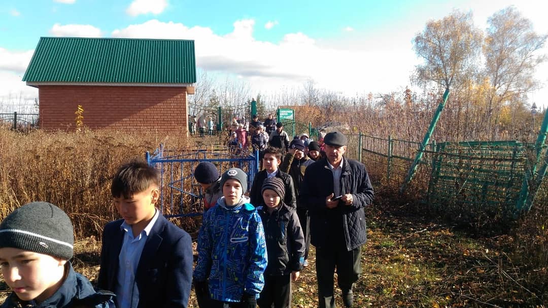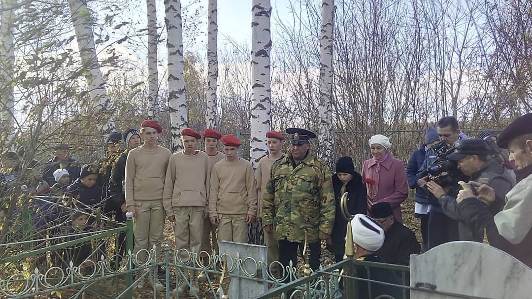 һәйкәлгә Килдураз авыл җирлеге әзерләгән венокларны салганнан соң, барысы да зиратка юл алдылар. Альберт абый анда Смоленщина җиреннән бер уч туфракны әнисе Әминә каберенә салды. Фәһим хәзрәт Сөләйманов коръән сүрәләре укып, мәрхүмнәрнең рухларына дога кылдылар.