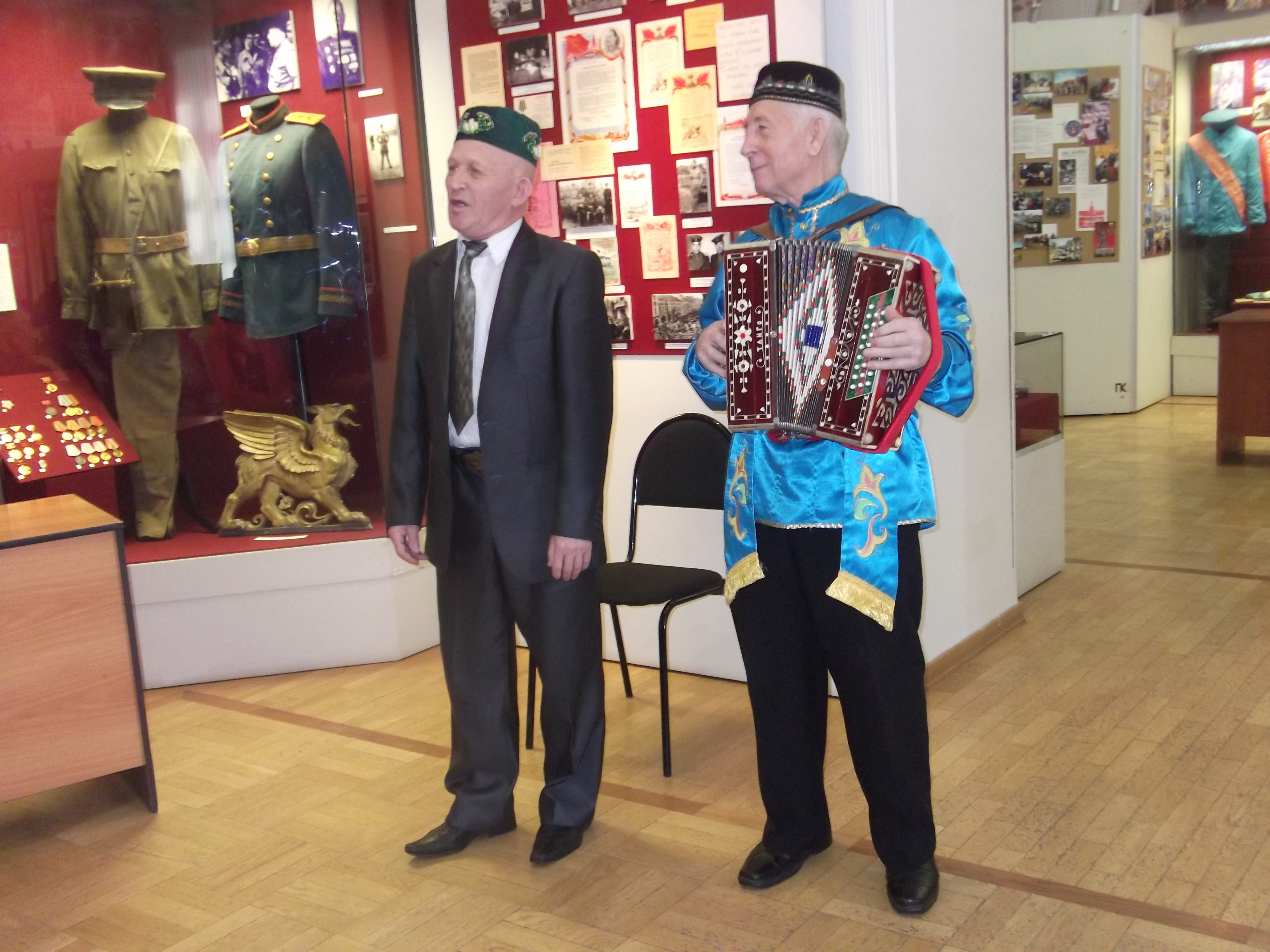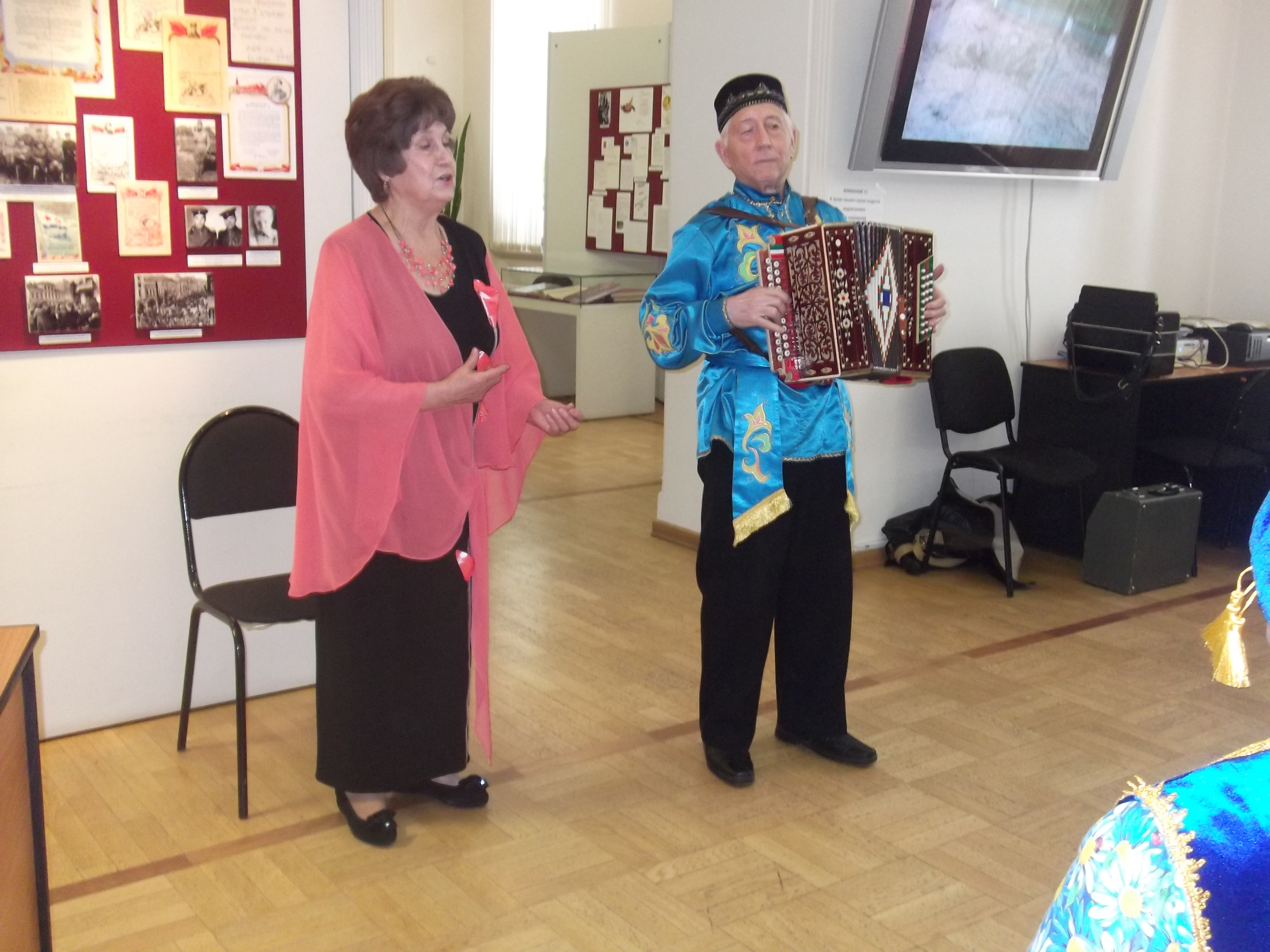 Бу көнне шул шанлы еллар аһәңе яңгырады безнең музейда. Фотоларда бик матур тавышлары белән йөрәкләргә үтеп керерлек җырларын бүләк итүчеләр: Зөлхәбирә Сәхәбутдинова, Шәүкәт Әгъзәмов һәм башкалар.