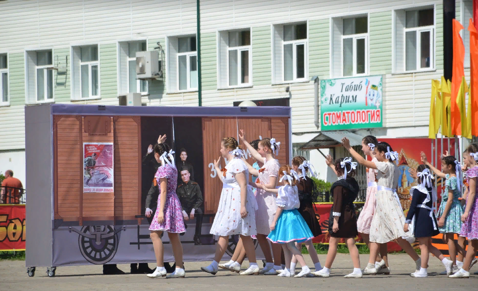 Традиция буенча, бәйрәм уңаеннан төп тантана Җиңү скверы янында үтте. Чарада сугыш башланган җанөшеткеч мизгелләр дә, Ленинград блокадасы афәтләре дә, Совет солдатының җиңүгә керткән тиңдәшсез өлеше дә тасвирланды. Бәйрәмнең төп кунаклары – Бөек Ватан сугышы ветераннары, тыл хезмәтчәннәре, тол хатыннар, сугыш чоры балаларының әлеге чыгышларны караганда күзләрендә яшь бөртекләре җемелдәде.