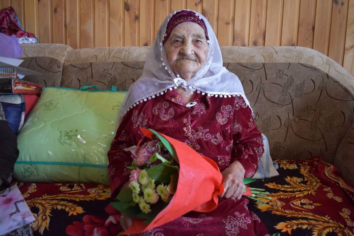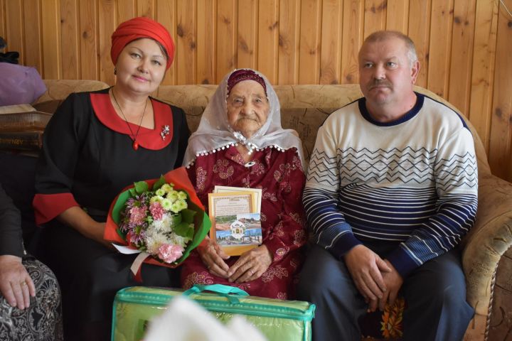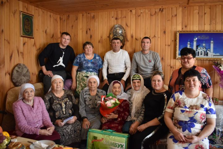 Бер гасырлык гомер бәйрәме белән котларга йорт тутырып якыннары җыелган иде. Аңа шулай ук Ил башлыгының Котлау хаты, Татарстан Республикасы Президентының Котлау открыткасы, район башлыгының Котлау открыткасы, бүләге, чәчәк бәйләмнәре тапшырылды. Район башкарма комитеты җитәкчесе урынбасары Луиза Сафина, Дәвеш авыл җирлеге башлыгы Таһир Хөсәенов иң изге теләкләрен юллап, тагын да озын гомерләр теләделәр.