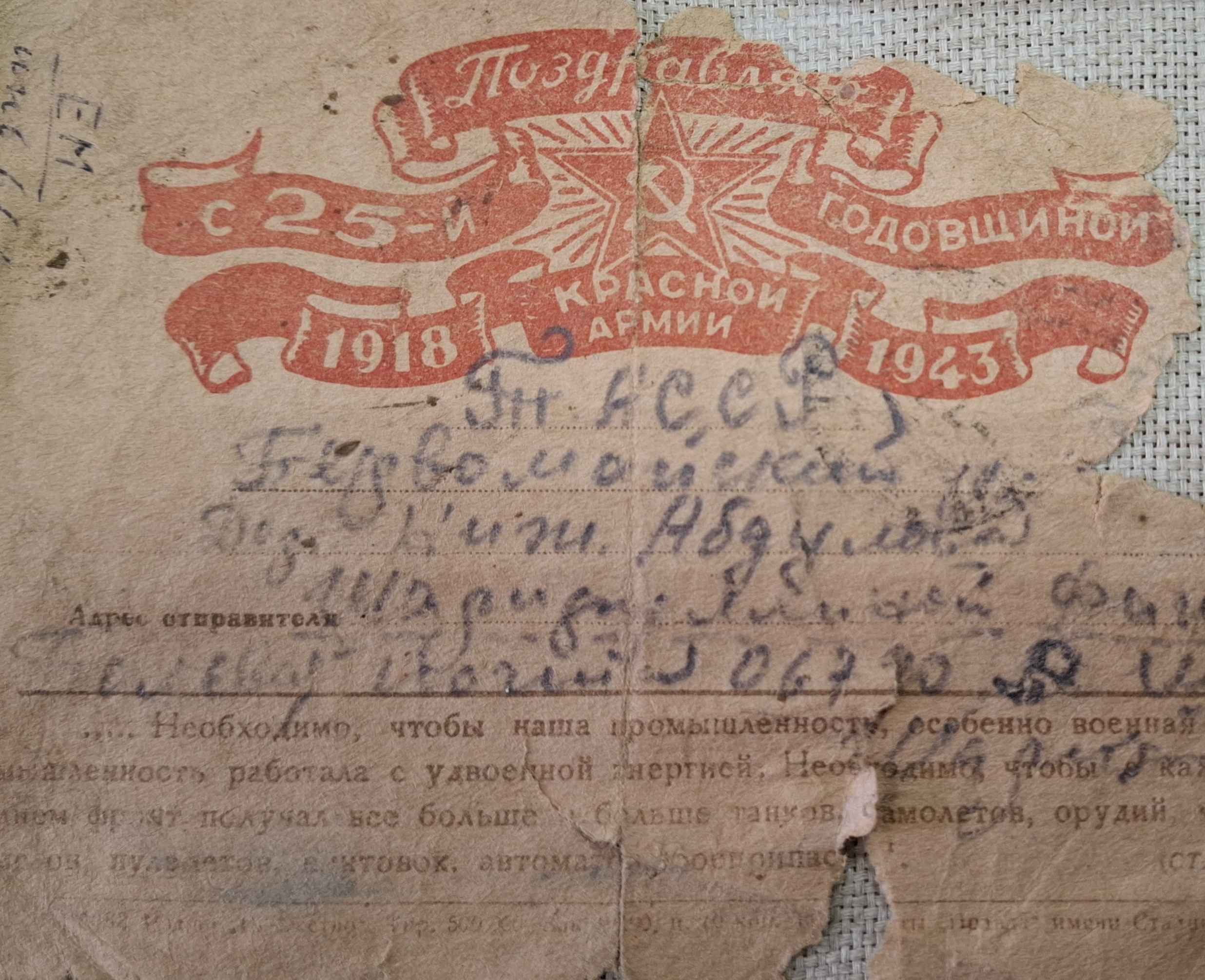 Истәлекле көннәргә һәм бәйрәмнәргә багышланган открыткалар күбесенчә пропаганда характерында була, андый открыткалар сугышчыларның һәм тыл хезмәтчәннәренең рухын күтәрү өчен хезмәт итә. әлеге открыткалар дошманның тар-мар ителәчәгенә һәм Җиңү көне җитәчәгенә өмет һәм ышаныч уяттылар. Рәсәйдә 25 мартта гадәти булмаган бәйрәм - почта открыткасының туган көне билгеләп үтелә. Нәкъ менә шушы датада 1872 елда безнең илдә ул беренче тапкыр дөньяга килә.Мәглүмәт интернет чыганакларыннан алынды.Фотосүрәттәге открытка Х.Ахмәтшин исемендәге Елховой авыл тарихы музее фондларында саклана.