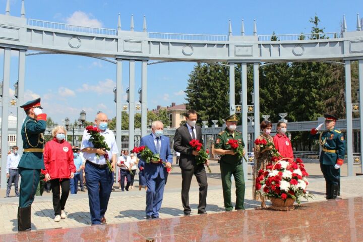 Һәлак булганнарны искә алдылар. Составында Әлмәт муниципаль районы башлыгы Тимур Нагуманов , "Татнефть", җитәкчелеге, Бөек Ватан сугышы ветераннары һәм ветераннар Советы,