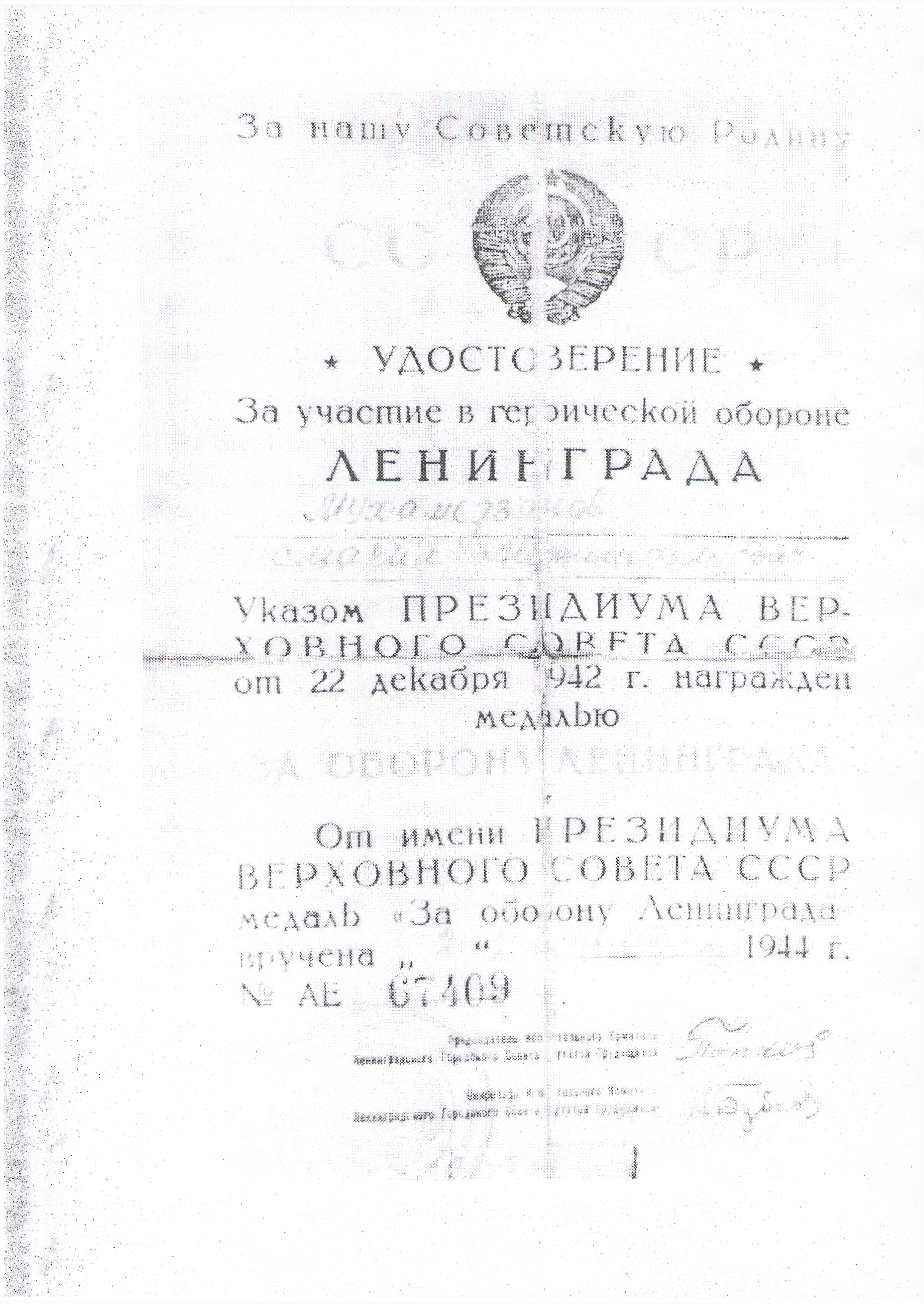 Әлеге сугыш елларындагы 900 тәүлек блокаданың 750 тәүлеген алдагы фронт линиясендә сугыша. 3 тапкыр яралана.
