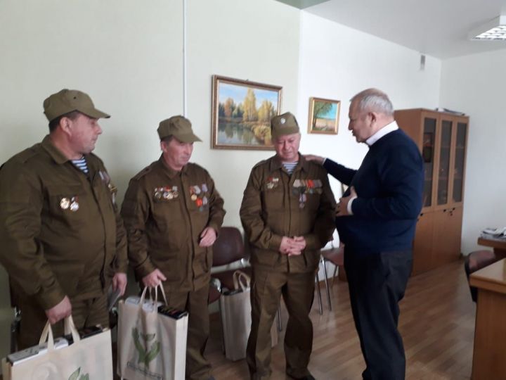 30 еллык хәтер-юбилей уңаеннан һәркайсын котлап, тыныч тормыштагы хезмәтләре өчен рәхмәт әйтеп, бүләк пакетлар тапшырды.