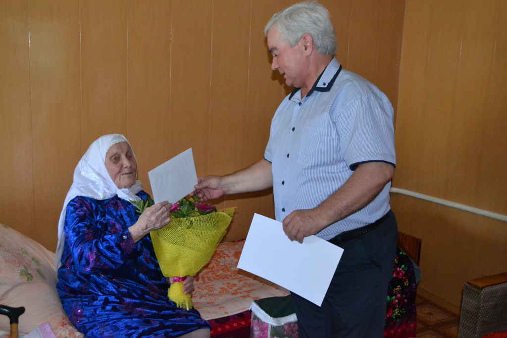 Тыл ветераны Мөнәвәрә Шәрәфиеваны 90 яшьлек юбилее белән котларга халыкны социаль яклау идарәсе җитәкчесе Илдус Әһлиев килгән иде. Ул тыл ветеранына Россия Президентының, район җитәкчесе Илшат нуриевның котлау хатларын, бүләкләр тапшырды.