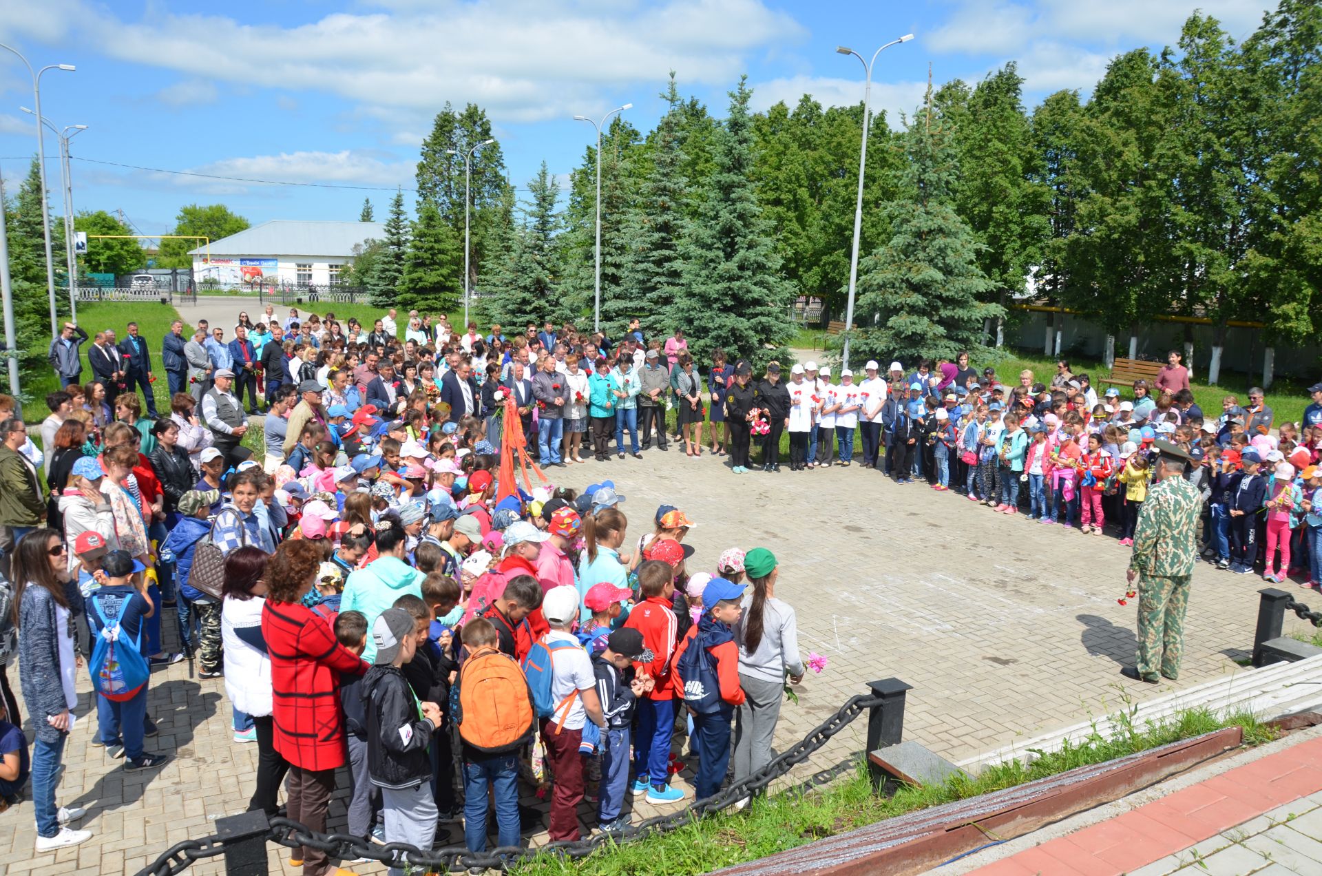 Шул уңайдан районда да Бөек Ватан сугышы елларында илебез азатлыгы өчен башларын салган ватандашларыбызны искә алу чаралары үткәрелде. 10.00 сәгатьтә район үзәгендә һәлак булганнар истәлегенә куелган мемориаль комплекста митинг үткәрелде. Чарада катнашучылар алдында район башлыгы урынбасары Гүзәл Гәрәева, Бөек Ватан сугышы һәм туган якны өйрәнү музее җитәкчесе Дания Кәшипова, Татарстан Хәрби комиссариатының Сарман һәм Мөслим районнары буенча бүлегенең хәрби чакырылыш бүлекчәсе начальнигы Ленар Һадиуллин, әфган сугышы ветераны Рафаэль Газизуллин чыгыш ясады. Чарада катнашучылар һәлак булганнарны бер минутлык тынлык белән искә алдылар, һәйкәлгә чәчәкләр салдылар.