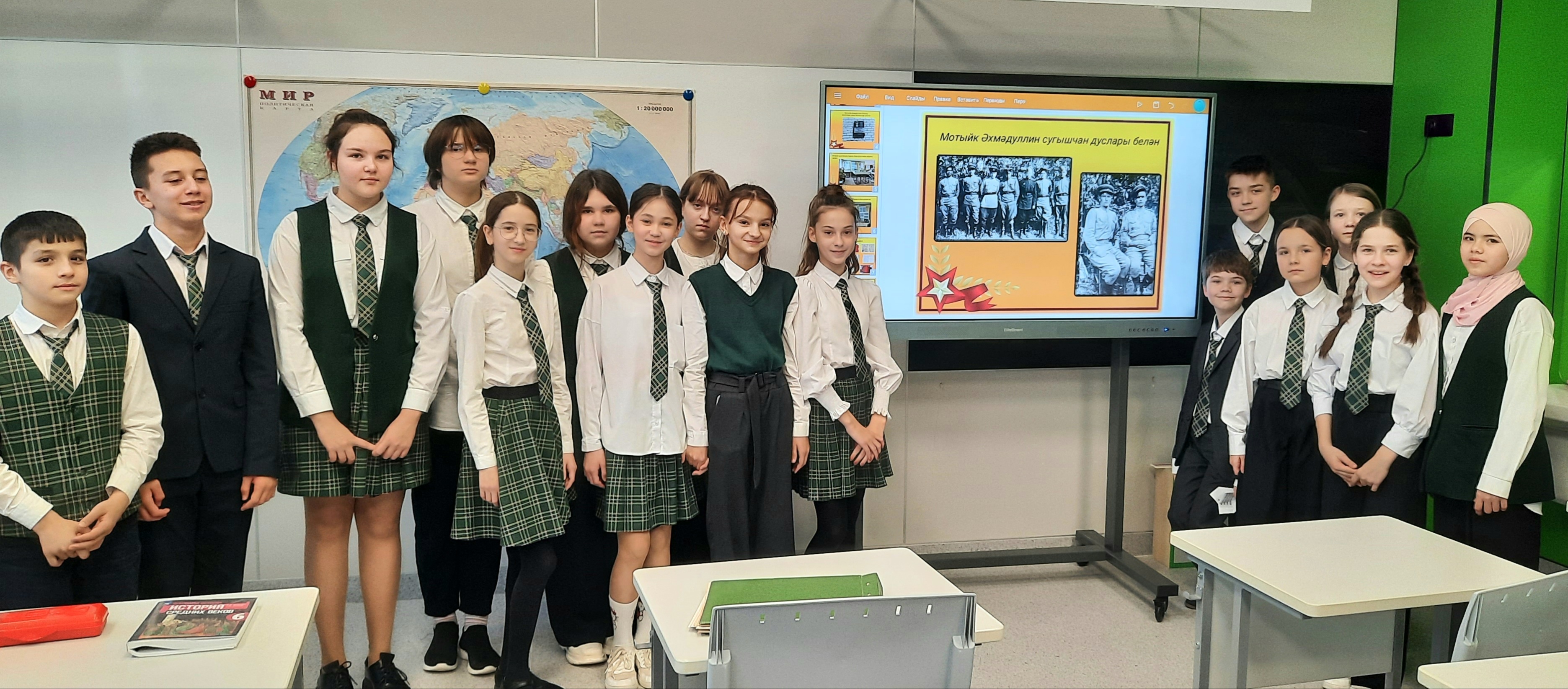 Әлмәт районында төрле сугышларда тиңдәшсез батырлыклар күрсәткән геройлар күп. Шулар арасында Бөек Ватан сугышында Советлар Союзы Герое исеменә лаек булган 2 герой бар – Мотыйк Әхмәдуллин һәм Никита Токарликов. 9 декабрь – Ватан геройлары көне уңаеннан 6 сыйныф укучылары өчен “Герой эзләре буйлап” дигән темага батырлык дәресе оештырылды. Укучылар Советлар Союзы Герое Мотыйк Әхмәдуллинның тормыш юлы, батырлыгы турында укыдылар, өйрәнделәр, фотолар карадылар. Әлмәттә һәм Әлмәт районында Мотыйк Әхмәдуллин исеме белән бәйле урыннарны өйрәнделәр. Өйрәнгән материалларга таянып, укучылар “Герой эзләре буйлап“ дип исемләнгән экскурсия маршруты төзеделәр. Әлегә бу сәяхәтнең маршруты виртуаль, ә җәй көне укучылар герой белән бәйле булган истәлекле урыннарга чын сәяхәт оештырырга теләк белдерделәр. Ә аннары үзләре экскурсовод булып, шәһәр кунаклары өчен өч телдә – татарча, русча, инглизчә экскурсияләр оештырырга теләүләрен әйттеләр. Укучыларның энтузиазмы, кызыксынучанлыклары таң калдырды мине. Туган якларының тарихын, кешеләрен, аларның батырлыкларын белсеннәр иде балалар, битараф булмасыннар иде. Тарихын белгән баланың адымнары нык була.