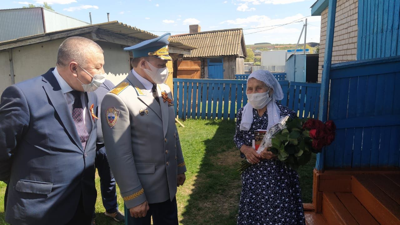 Район башлыгы Фәрит Хөснуллин, район Башкарма комитеты җитәкчесе урынбасары Индира Сәхипова, Сарман авыл җирлеге башкарма комитеты җитәкчесе Николай Сахуриев та ветеранны бәйрәм белән тәбрикләделәр, чәчәк бәйләмнәре, күчтәнәчләр тапшырдылар.