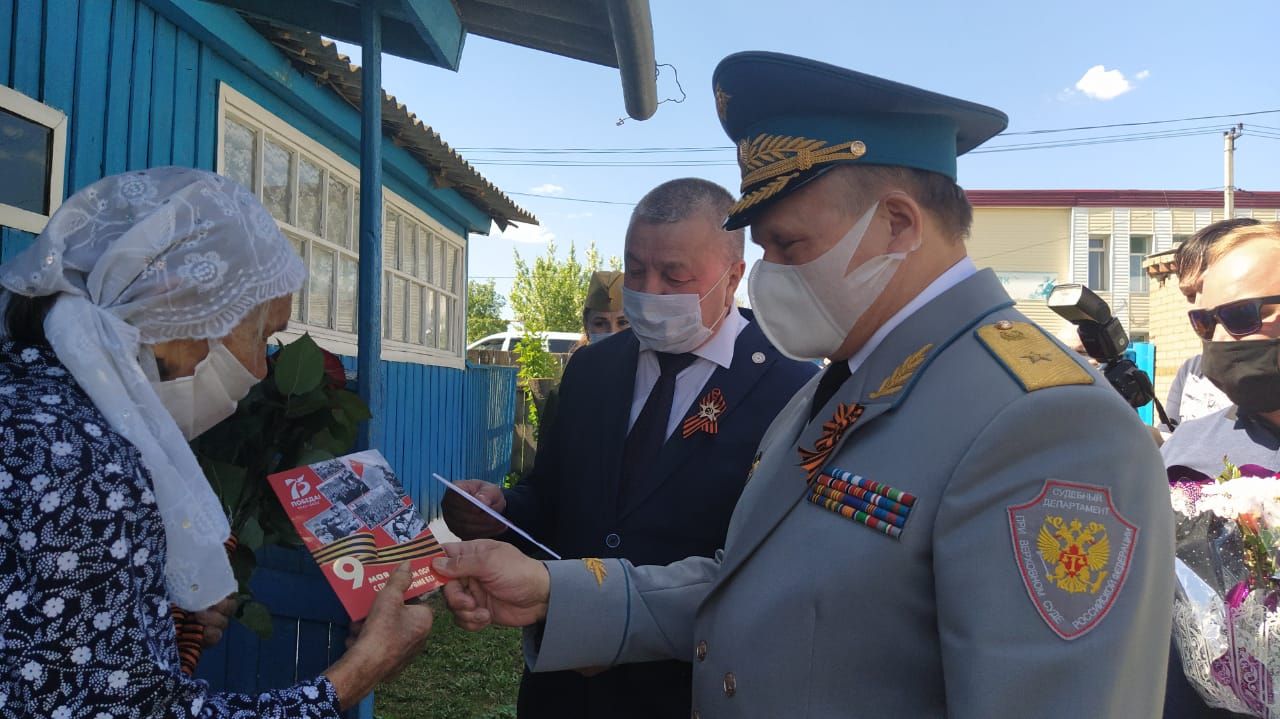 Гомерен яшь буынга белем һәм тәрбия бирүгә багышлаган мөгаллим Вәлиева Мөзәянә Гариф кызын Җиңү көне белән котларга шәхсән үзе барды районга кайткан ТР Суд департаменты идарәсе җитәкчесе Җәүдәт Салихов.