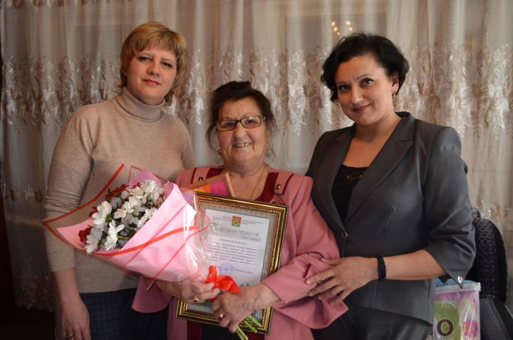 Район Советы аппараты җитәкчесе Роза Нурмиева һәм “Йолдыз“ (“Звезда“) газетасы редакторы Гүзәл Хилавиева Вәзимә апа Рәхимованы район җитәкчелеге исеменнән туган көне белән котлап кайттылар. “Апас районы оешуга – 90 ел“ истәлек медале, район башлыгының Рәхмәт хатын тапшырдылар, чәчәк бәйләме һәм җылы юрган бүләк иттеләр.