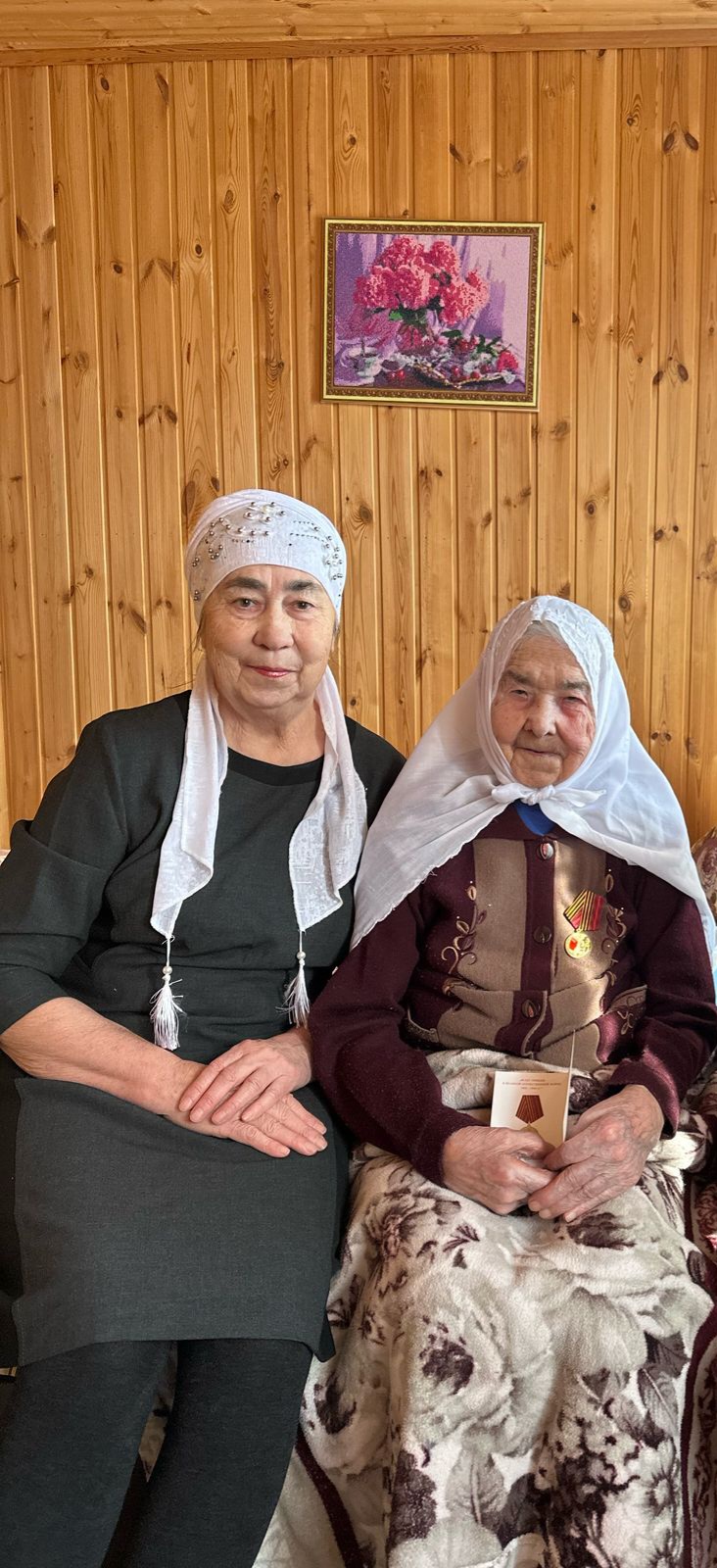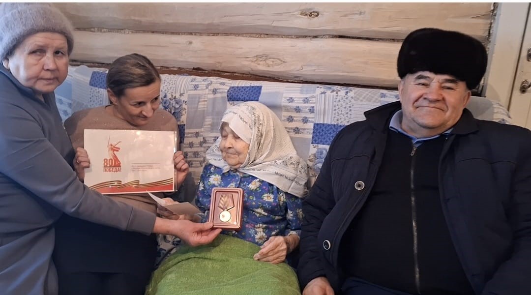 Галиәскарова Хәнифә Әхмәтгатин кызына ,Галимова Фагимә Сәлим кызна , Зиганшина Сафия Хаматгалим кызына ,Сунгатулина Мәсрүрә Хатыйп кызына , Гатина Нәфисә Сарбак кызына, Дәвләтшина Мәрьям Әбелгата кызына Бөек Җиңүнең 80 еллык медале тапшырып, авыр сугыш елларындагы хезмәтләре өчен аларга рәхмәт белдереп , ныклы сәламәтлек һәм озак елларга күңел күтәренкелеге теләделәр.