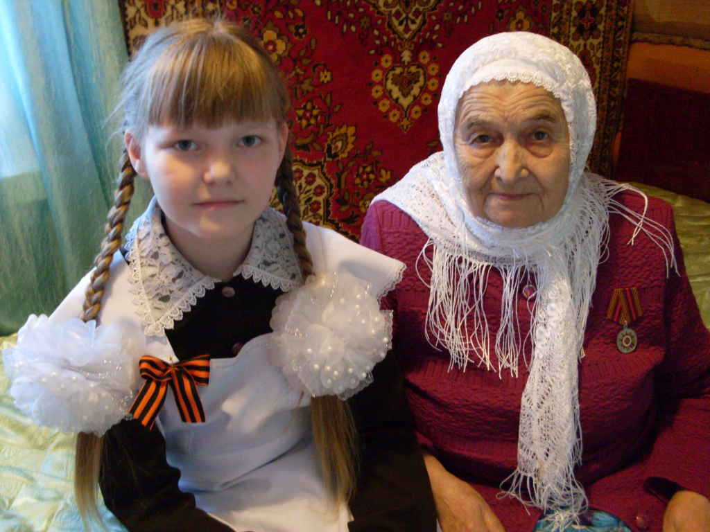 Дәү әниемнең әнисе — дәү әбием Гыйндуллина Вакыя Гыйндулла кызы – тыл ветераны һәм сугыш чоры баласы. Бөек Ватан сугышы башланганда аңа, нәкъ минем кебек, 10 яшь булган. “ Безнең балачакны сугыш урлады, сезгә тыныч тормышта, әти–әни тигезлегендә яшәргә насыйп булсын”, – ди ул. 10 яшьлек бала гына булса да, туган илен саклауга, Җиңү көнен якынайтуга үзеннән зур өлеш керткән әбием. Уфалла арбасы тартып тирес түгүләр, амбарда молотилкада эшләүләр, төн утырып фронт өчен бияләйләр бәйләү, урак уру һ.б. бик күп эшләр тылда калган хатын–кызлар һәм балалар җилкәсенә төшкән. Дәү әбием безгә: ” Без күргәнне күрергә язмасын иде сезгә. Сугышлар булмасын, тынычлыкта яшәгез. Белем алырга тырышыгыз. Кечкенәдән эшкә өйрәнегез, эш белгән кеше, беркайчан да югалмый”, – дип өйрәтә. Без – оныкчыклары, дәү әбиебез белән бик горурланабыз.