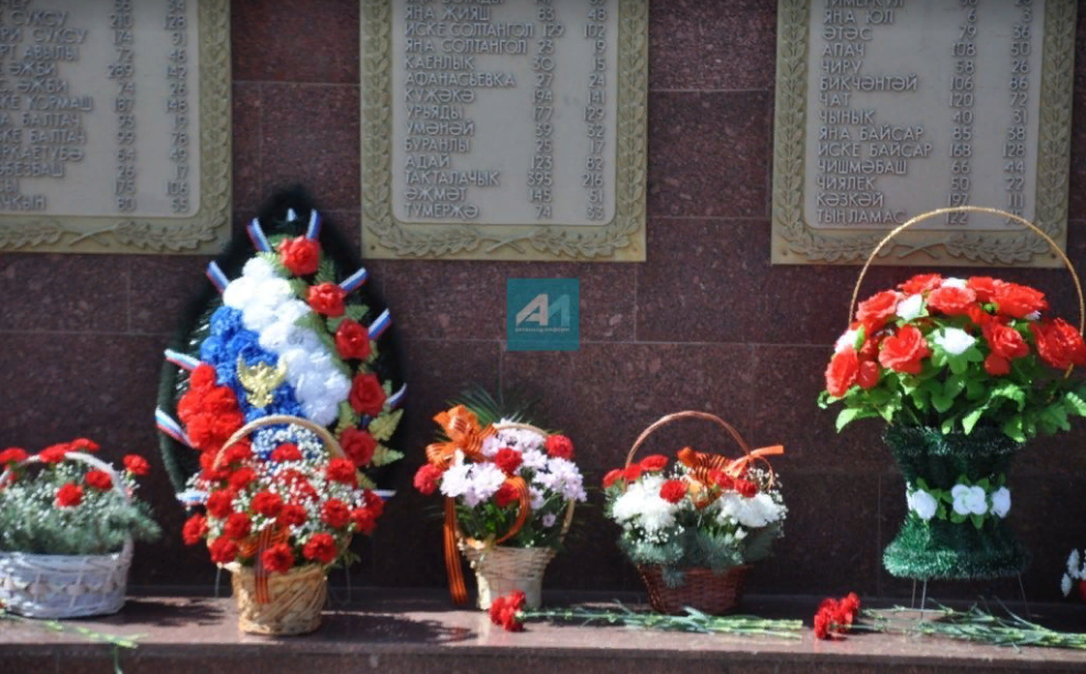 ҖИҢҮ ЯЗЫ ӨЧЕН РӘХМӘТ СЕЗГӘ, ВЕТЕРАННАР!: Актанышның Җиңү паркында һәйкәлләргә тере чәчәкләр салынды