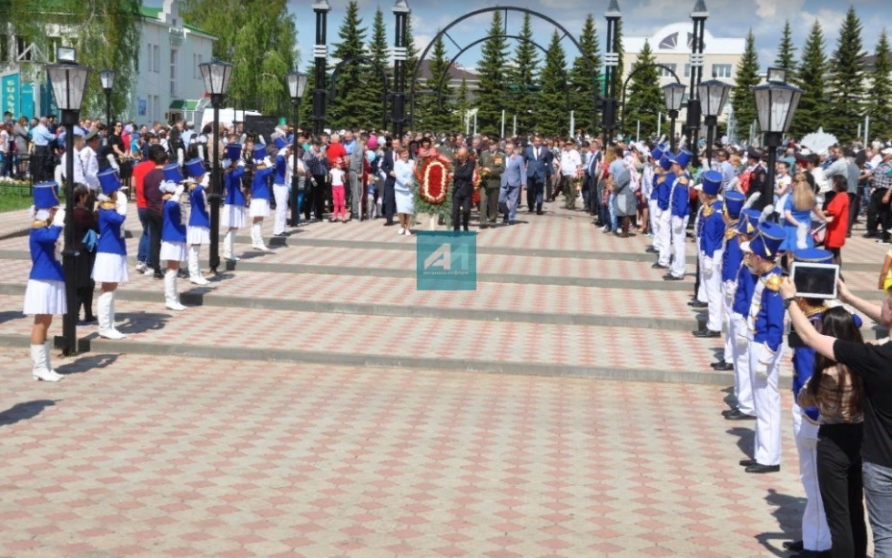 Район җитәкчелеге, ветераннар, район үзәгенең барлык оешма һәм предприятиеләре, шулай ук укучылар һәм укытучылар коллективлары илебез азатлыгы өчен көрәшкән райондашларыбыз истәлегенә Җиңү паркында һәйкәлләргә чәчәкләр салдылар. Һәлак булганнарны бер минутлык тынлык белән искә алдылар.