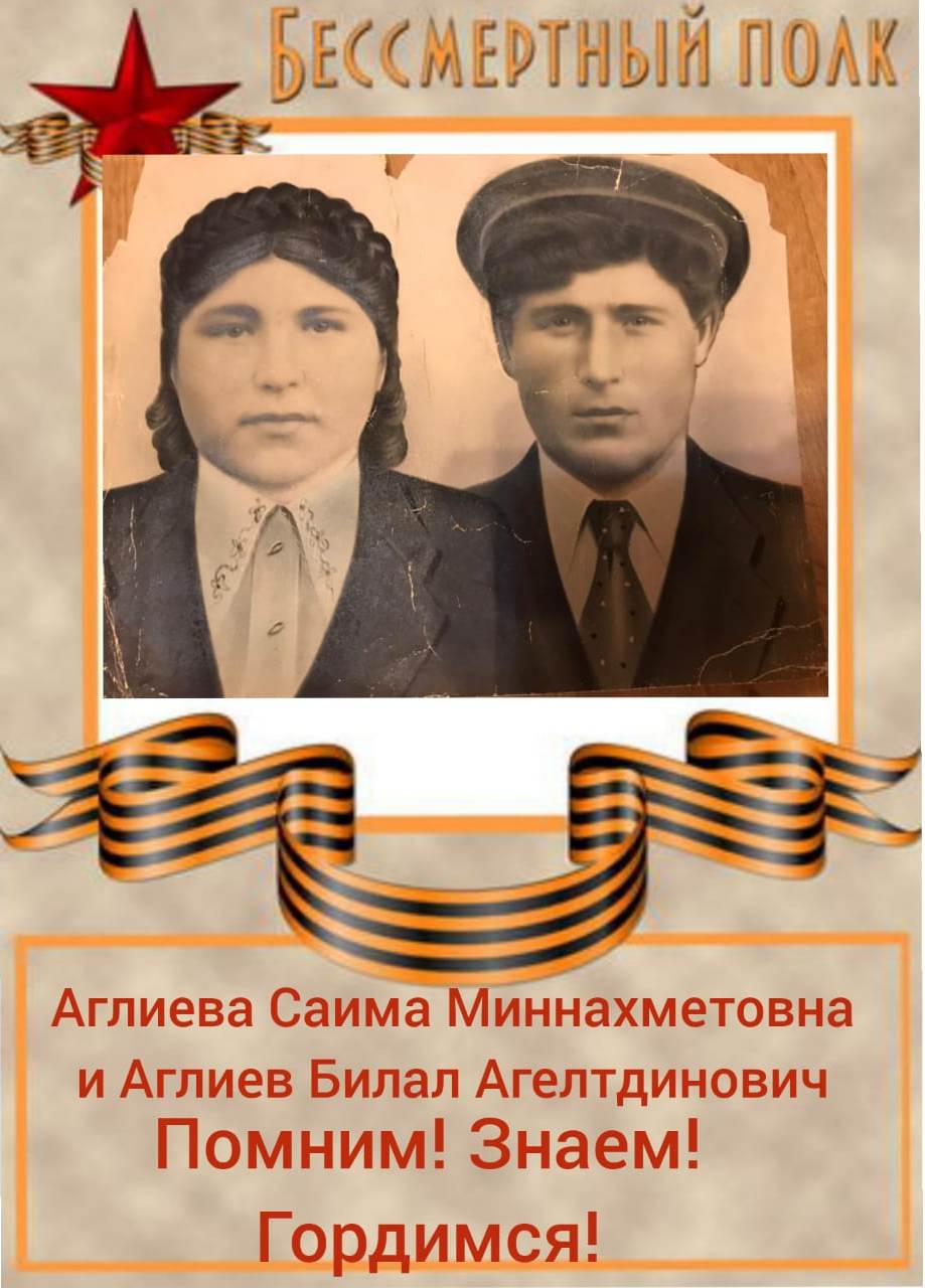 Сугышның беренче көннәреннән үк фронтка киткән бабам,әниемнең әтисе,1942 елда хәбәрсез югала.Әгълиев Билал Әгъли улы 1913 елда Сарман районы,Балтамак авылында туа.Шушы авылның уңган-булган бик матур кызы Шәйгалләмова Саимәгә(минем әбиемә)өйләнә.1937 елда аларның бердәнбер кызлары Хатыйма туа.