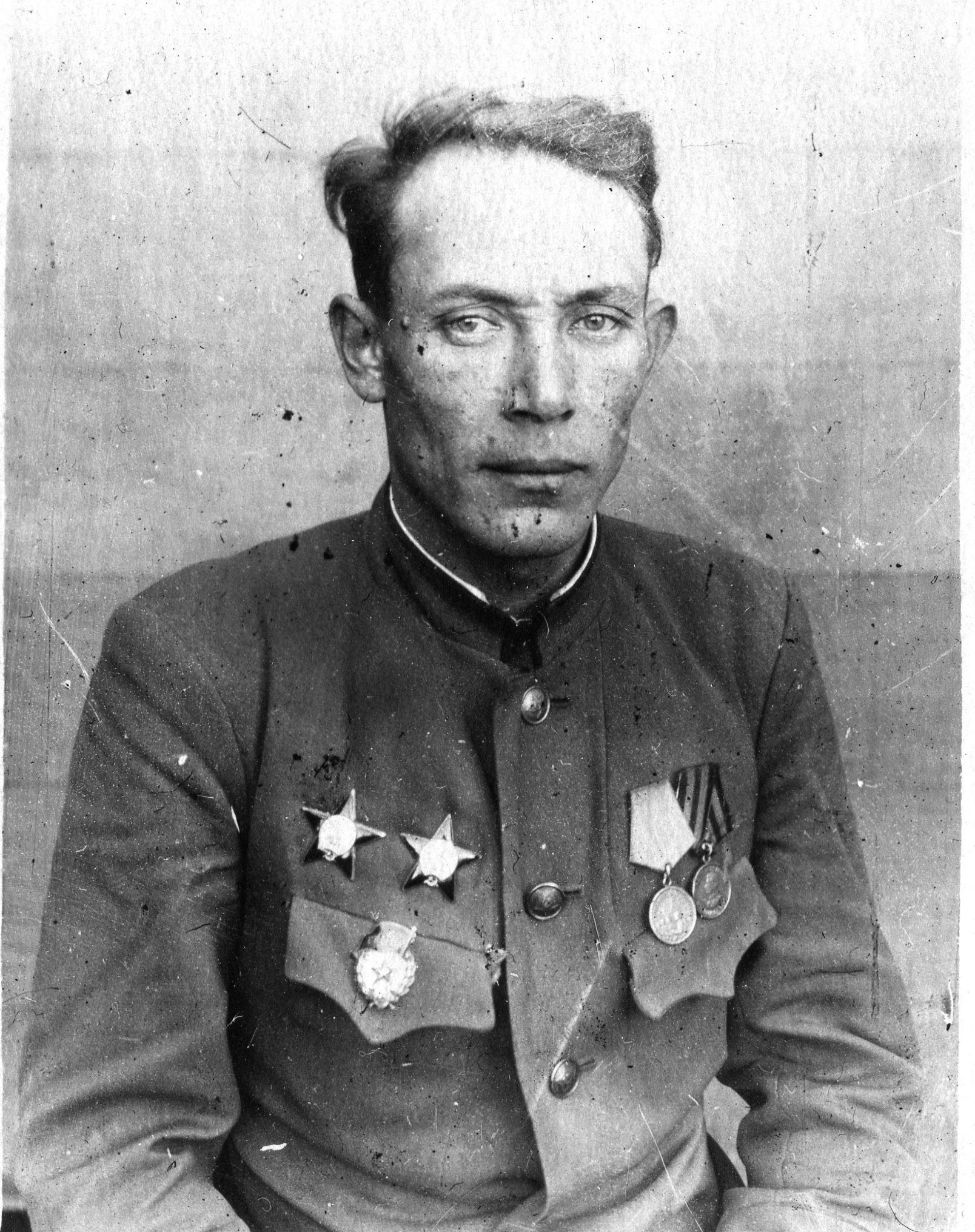 “...Иптәш Насыйров Буденный районының Иске Шәйморза урта хәлле крестьян семьясында туган. Туганнары арасында кулак буларак сөргенгә җибәрелүчеләр юк, үзе дә суд тарафыннан хөкем ителмәгән. 1937-1938 елларда Буденный МТСында мастерской мөдире булып эшләгән. 1938-1945 елларда Кызыл Армия сафларында була, ак финнарга каршы һәм Бөек Ватан сугышында рота командиры булып катнаша. Немец илбасарларына каршы сугышларда күрсәткән батырлыклары өчен ике “Кызыл Йолдыз” орденнары, “Ленинград оборонасы өчен”, “Германияне җиңгән өчен” медальләре белән бүләкләнгән”.