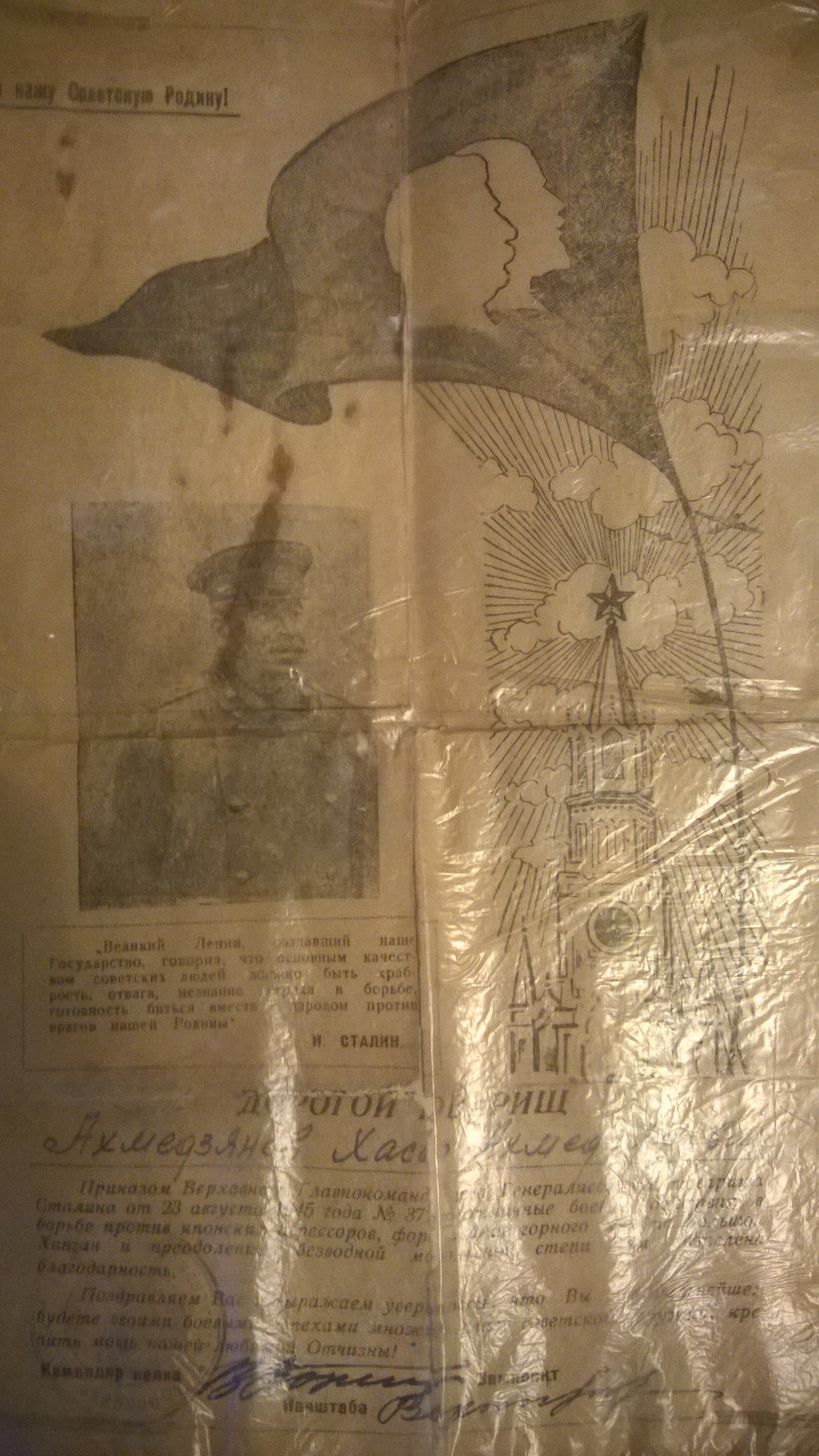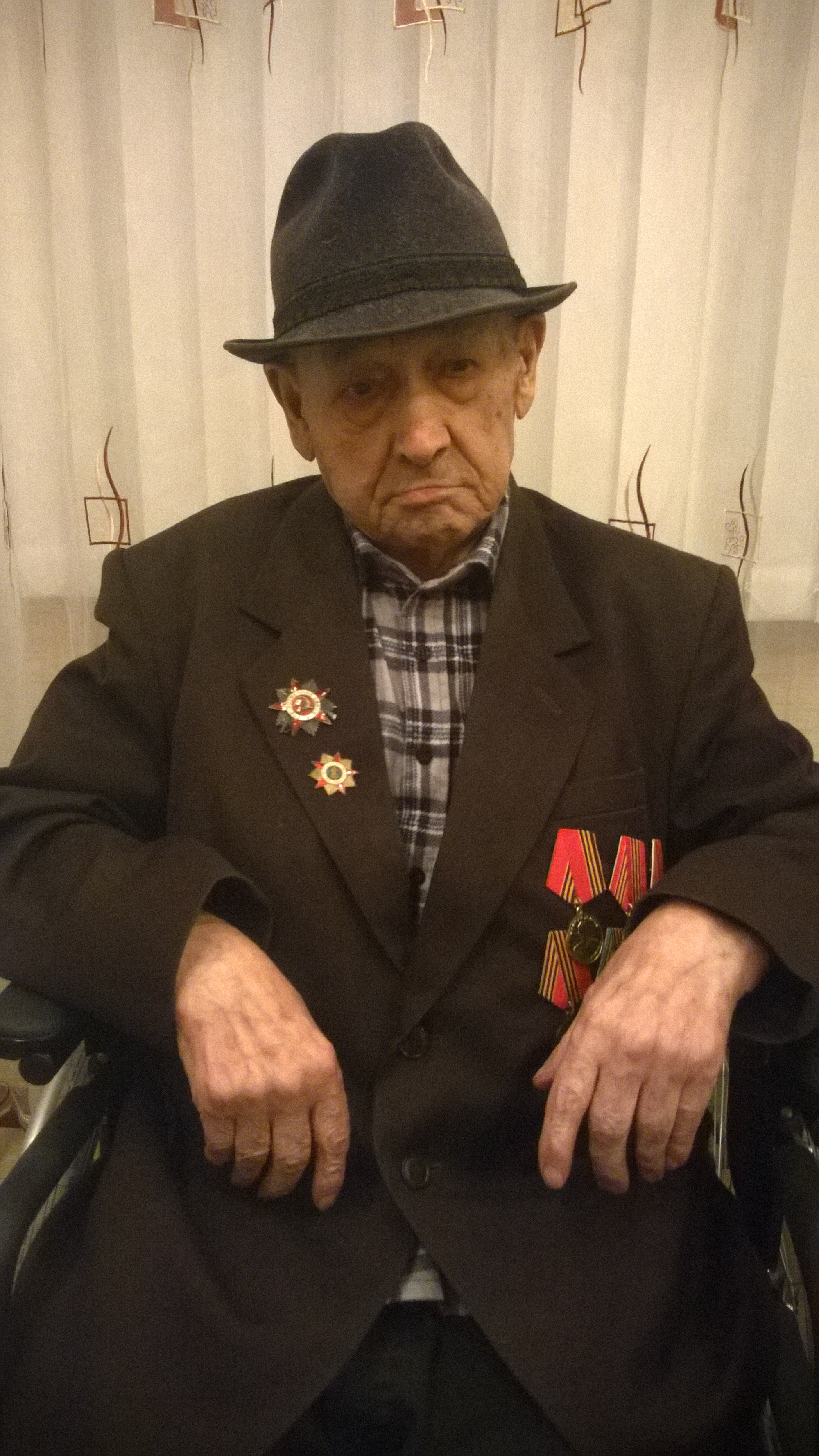 Ветеран мало что уже помнит, на войну пошёл в 1945 на дальний восток воевать с Японией. Его часть дислоцировалась в Монголии на границе с Китаем, в то время захваченной Японией. К сожалению о войне ничего не помнит.