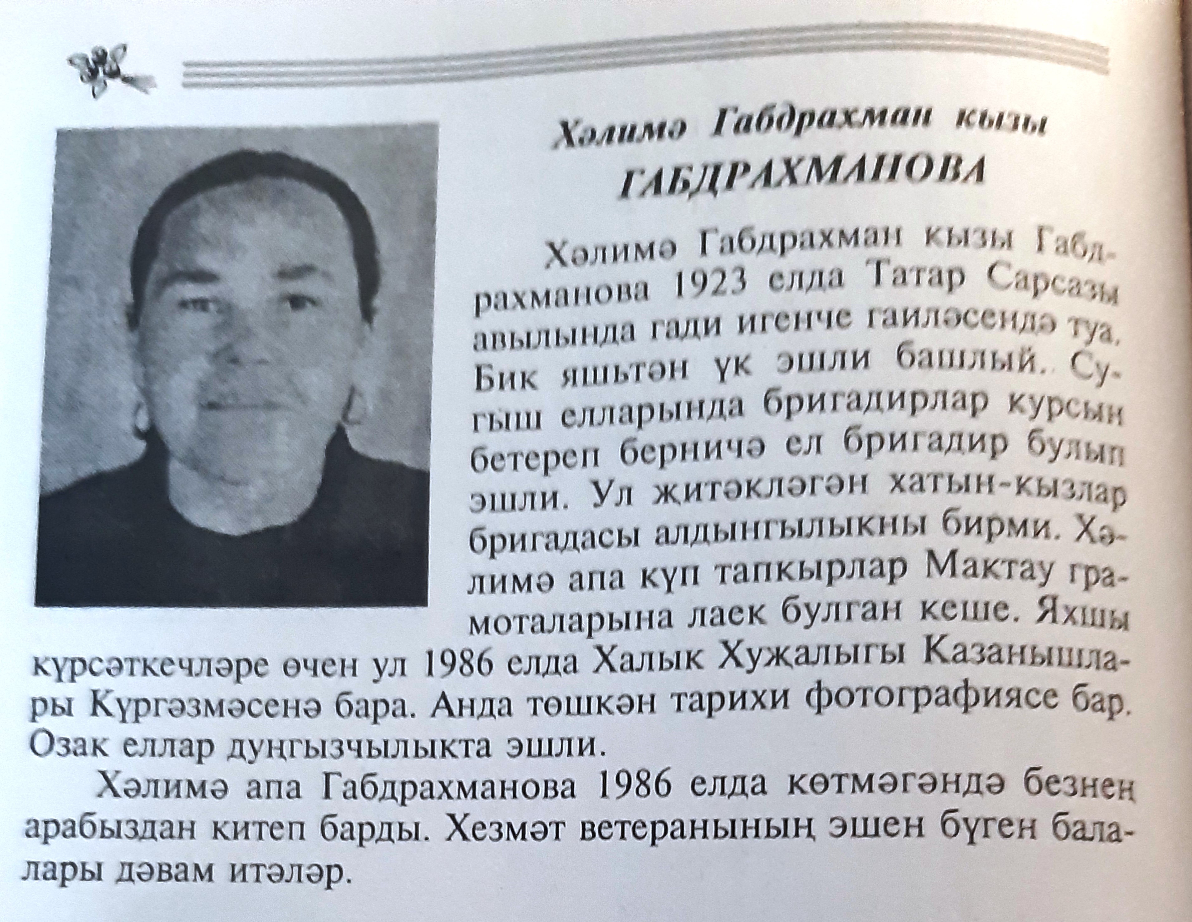 ГАБДРАХМАНОВА ХЭЛИМЭ ГАБДРАХМАН КЫЗЫ Район: МенделеевскийТруженики тыла Опубликовано 10 May, 2020 - 16:14 пользователем Краеведческий м...