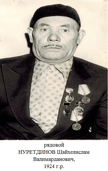 Нуретдинов Шәйхелислам Вәлимәрдан улы 1926 елда ТАССРның Әлки районы Татар Борнае авылында туа. Фронтовик. Бөек Ватан сугышы ветераны. 1942 елда Әлки район хәрби комиссариатыннан чакырыла. 1998 елда вафат.