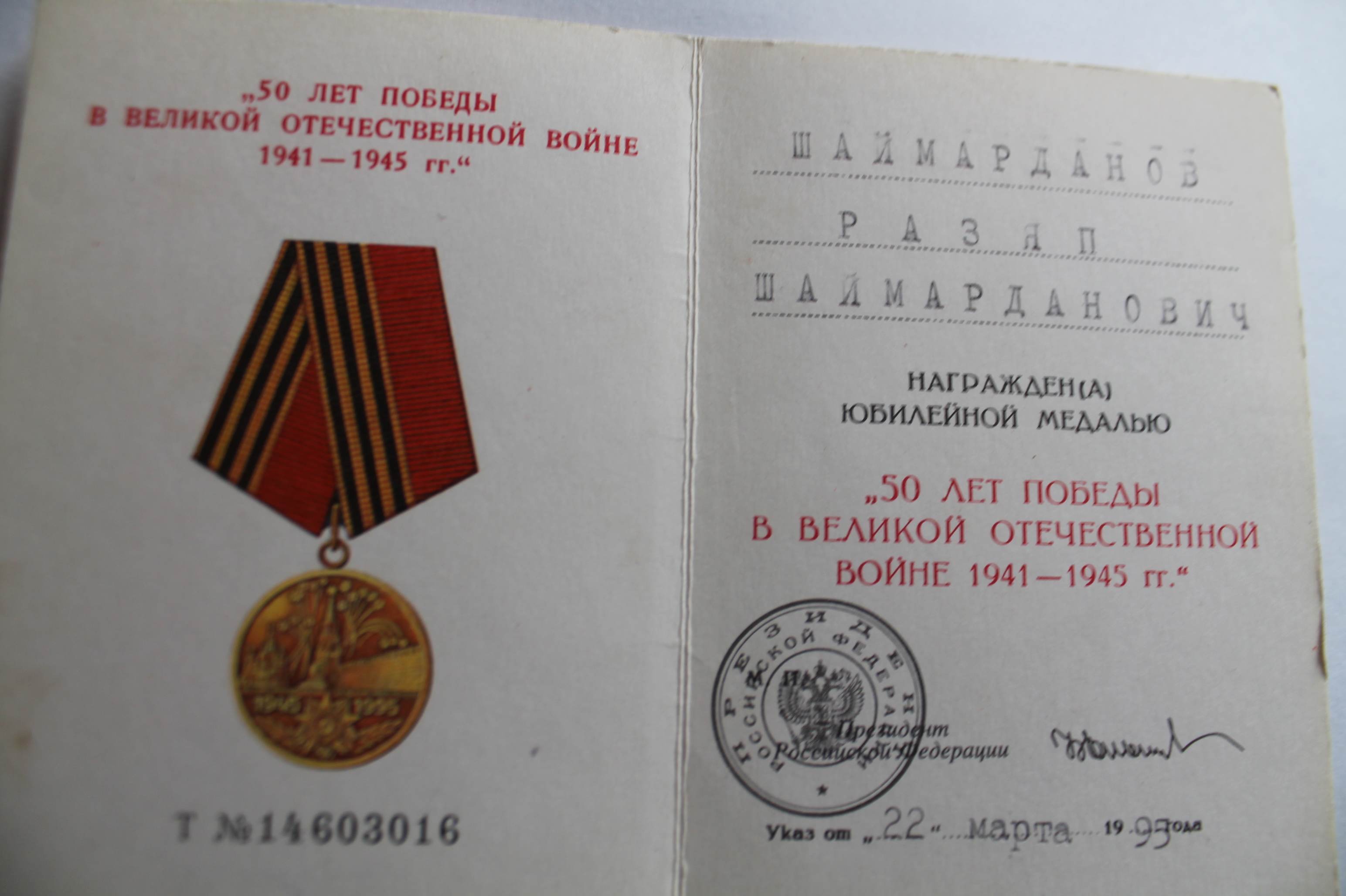 Бөек Җиңүнең 30,40,50,55,60,70 еллык юбилей даталары хөрмәтенә бирелгән медальләр Рәҗәп Шәймәрдан улының күкрәген бизәп торалар.